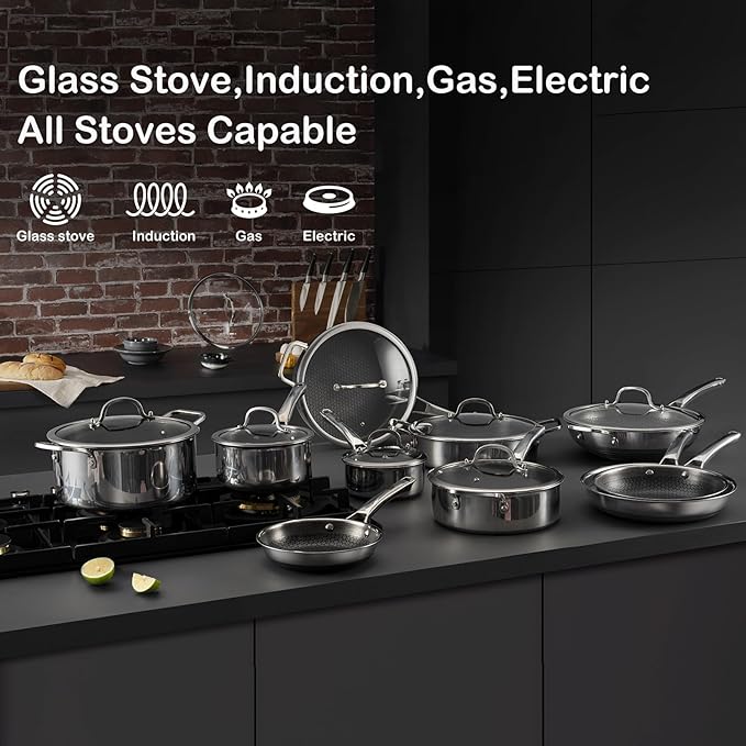 13-inch (approx. 33.0 cm) non-stick frying pan and saucepan, non-toxic stainless steel with lid, dishwasher safe, induction oven safe, PFOA free.